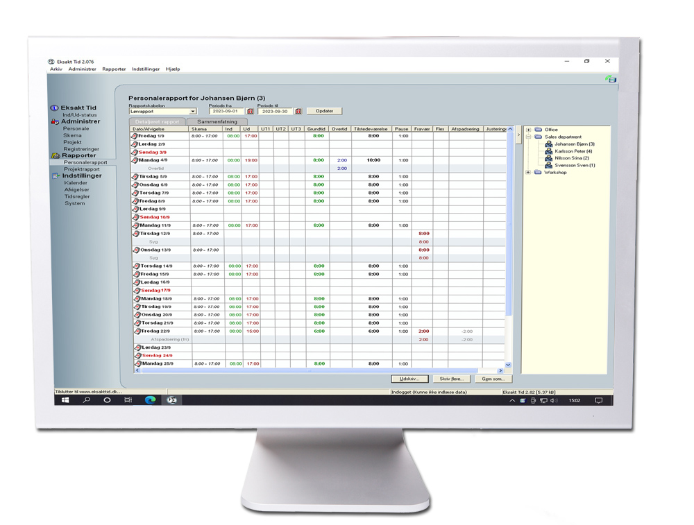 Med Eksakt Tid indsamler I automatisk al data til lønkørsel for den enkelte ansatte. Dermed undgår I manuel beregning af antal timer og får en præcis dokumentation af antal timer i stedet for et skøn.